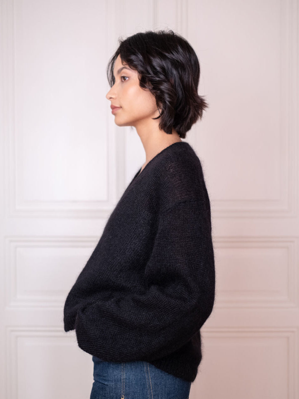 A lightweight cardigan in luxurious Superkid Mohair with a feminine V-neckline and relaxed fit – effortlessly chic, versatile, and a timeless wardrobe favorite – perfect for layering through the seasons ♥