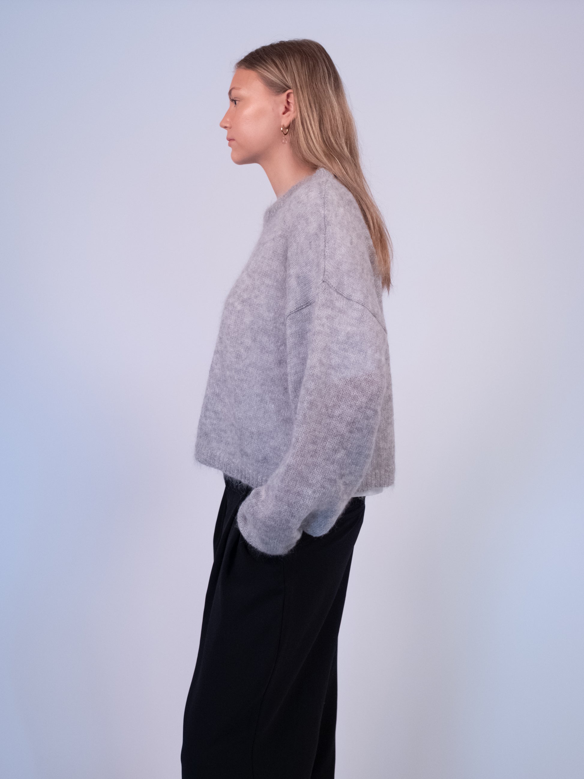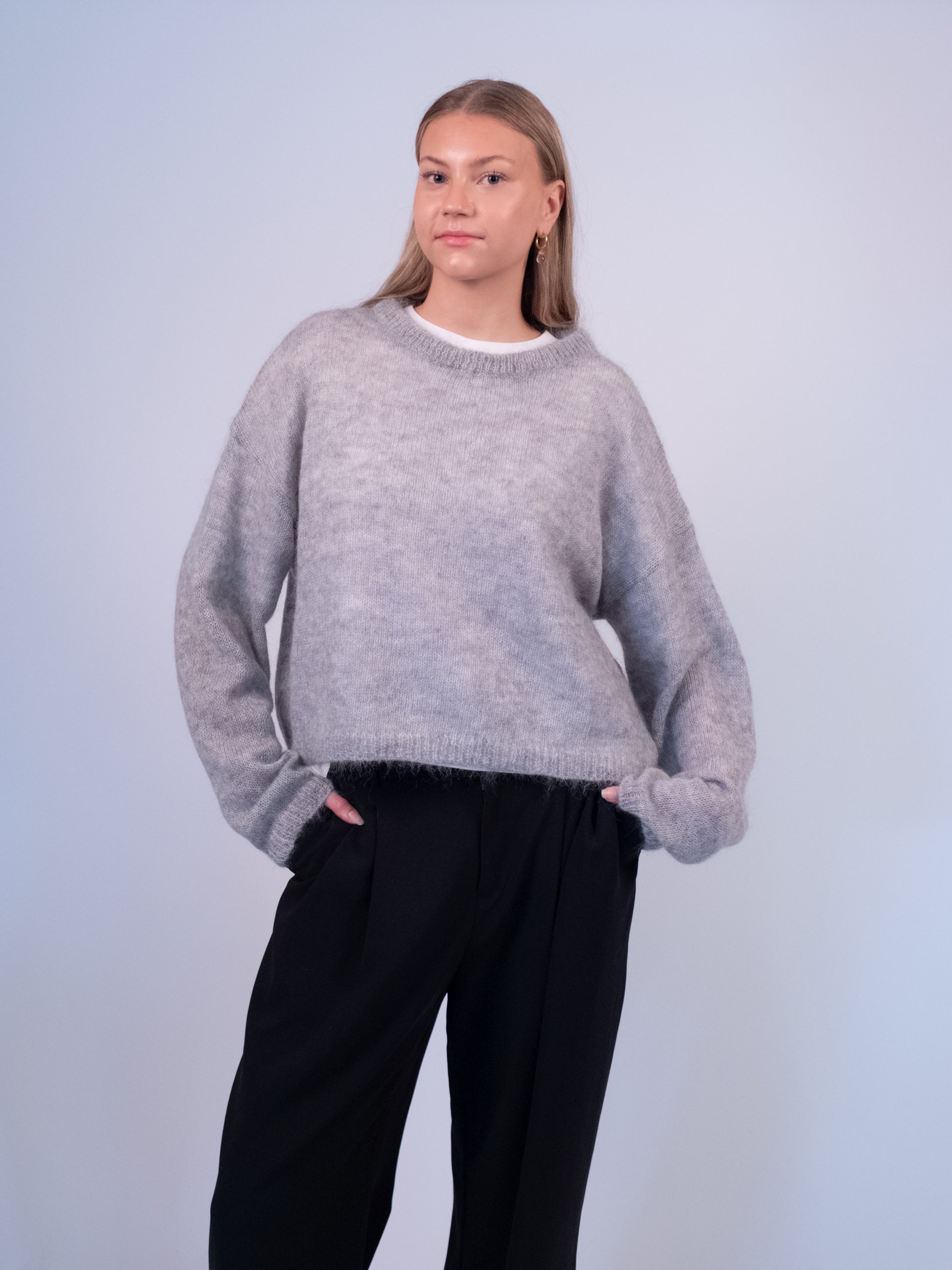 Lightweight oversized sweater made from luxurious Superkid Mohair, featuring an elegant slightly larger O-neck, relaxed boxy fit, and extra long sleeves. Works perfectly in layered styles – cozy, versatile, and perfect for year-round wear ♥