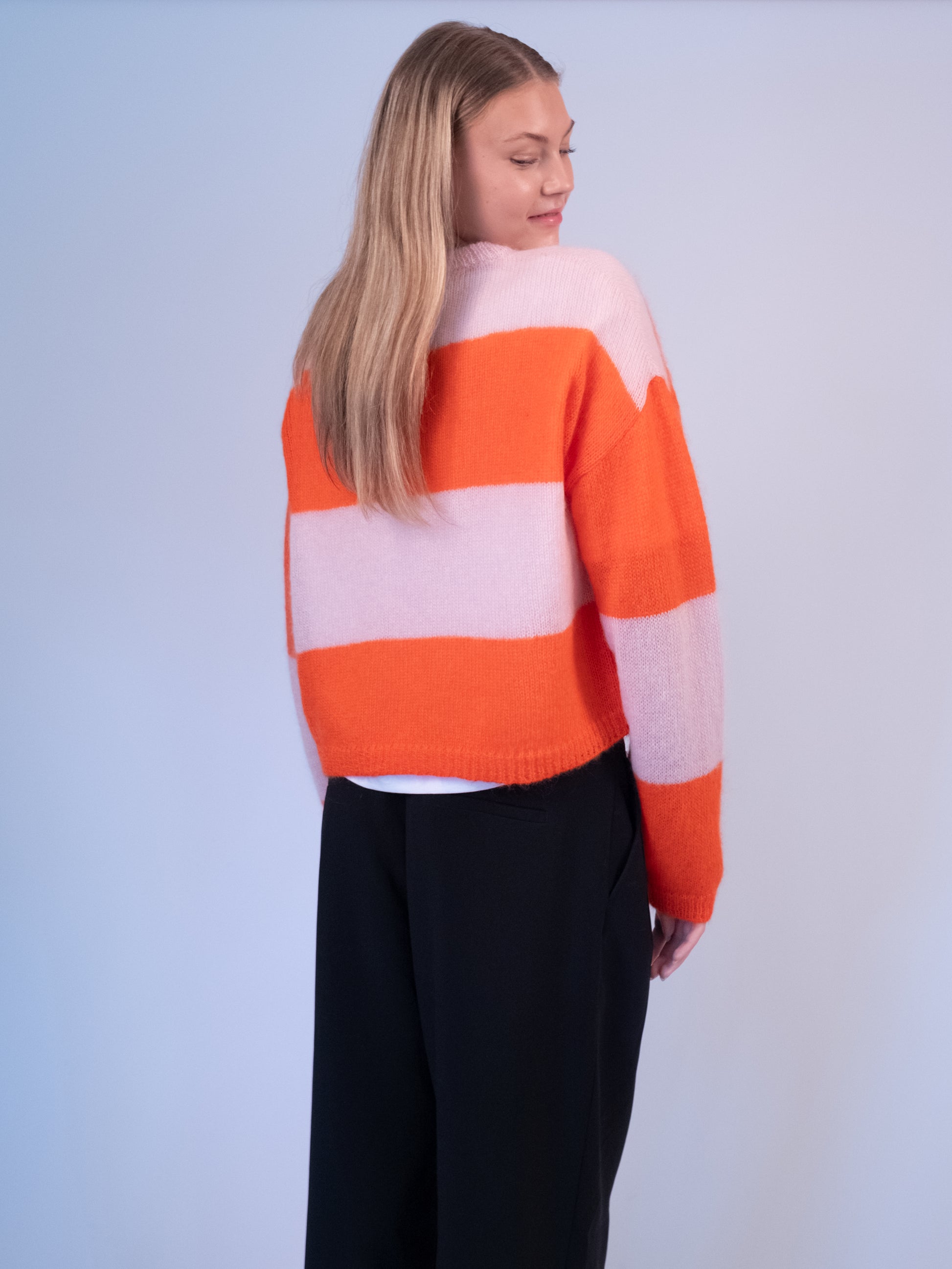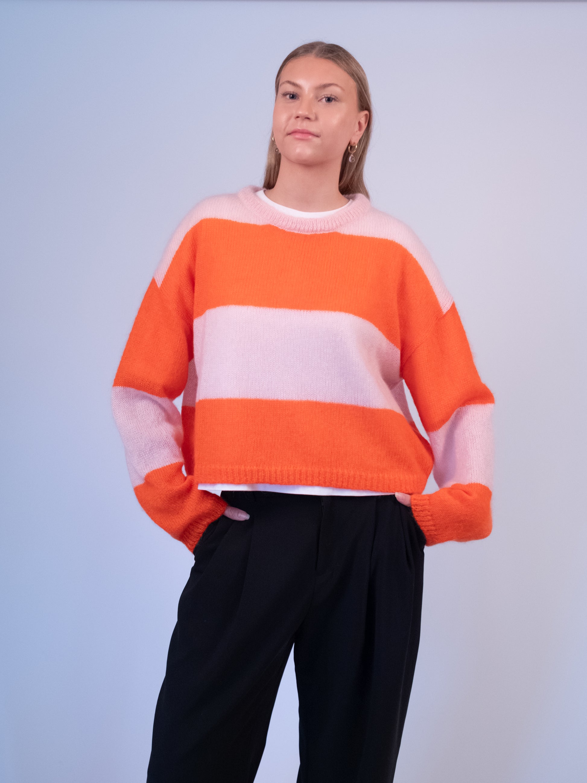 Lightweight oversized sweater made from luxurious Superkid mohair, featuring an elegant slightly larger O-neck, relaxed boxy fit, and extra long sleeves. Works perfectly in layered styles – cozy, versatile, and perfect for year-round wear ♥
