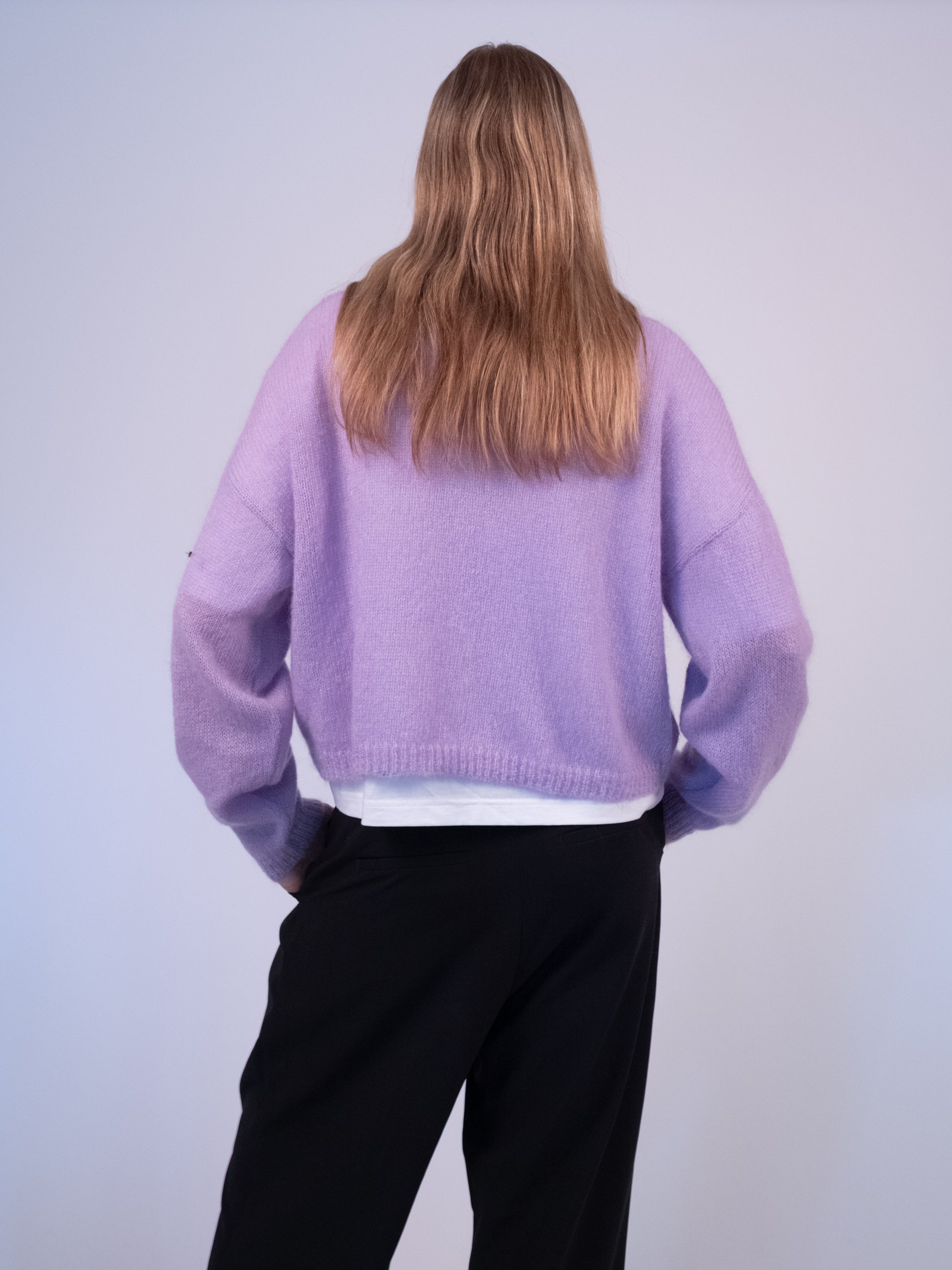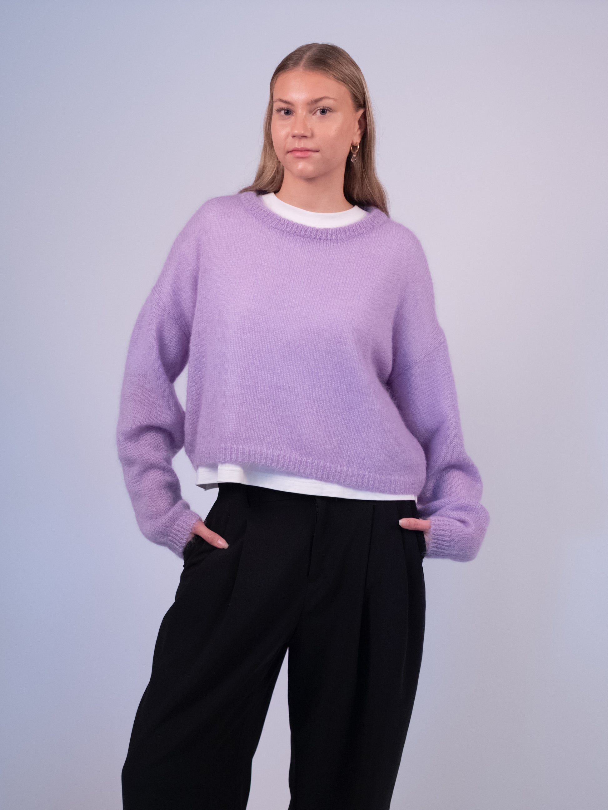Lightweight oversized sweater made from luxurious Superkid Mohair, featuring an elegant slightly larger O-neck, relaxed boxy fit, and extra long sleeves. Works perfectly in layered styles – cozy, versatile, and perfect for year-round wear ♥