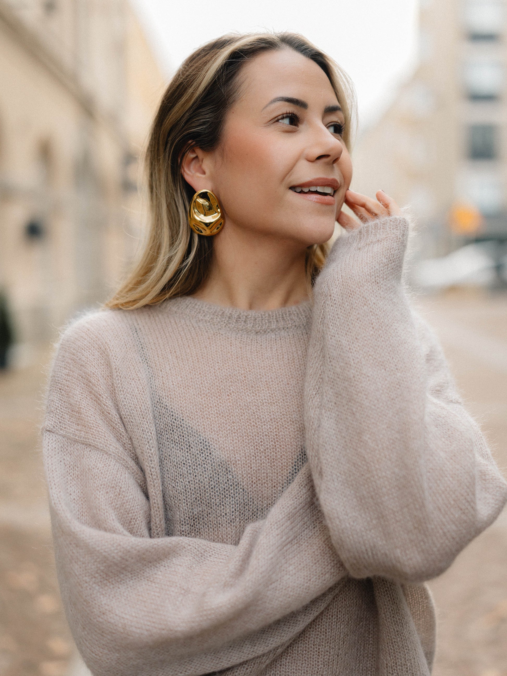 Lightweight oversized sweater made from luxurious Superkid mohair, featuring an elegant slightly larger O-neck, relaxed boxy fit, and extra long sleeves. Works perfectly in layered styles – cozy, versatile, and perfect for year-round wear ♥