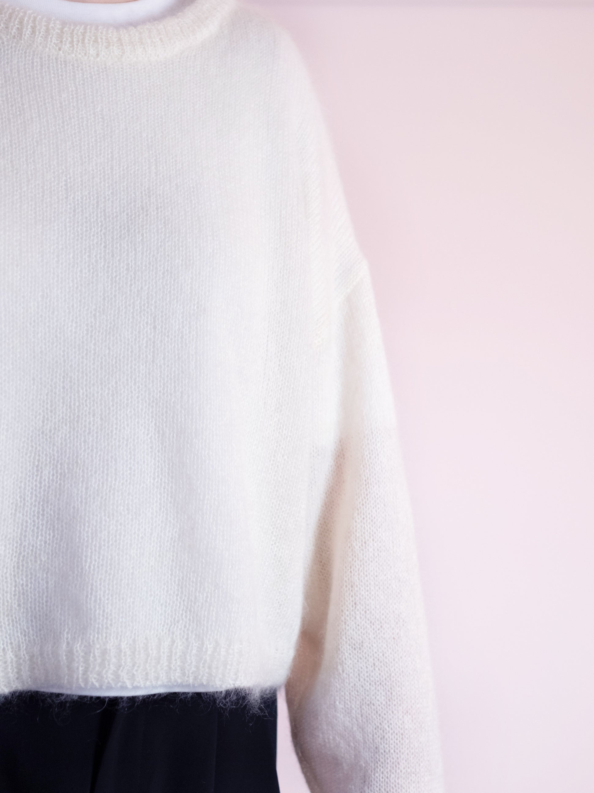 Lightweight oversized sweater made from luxurious Superkid mohair, featuring an elegant slightly larger O-neck, relaxed boxy fit, and extra long sleeves. Works perfectly in layered styles – cozy, versatile, and perfect for year-round wear ♥