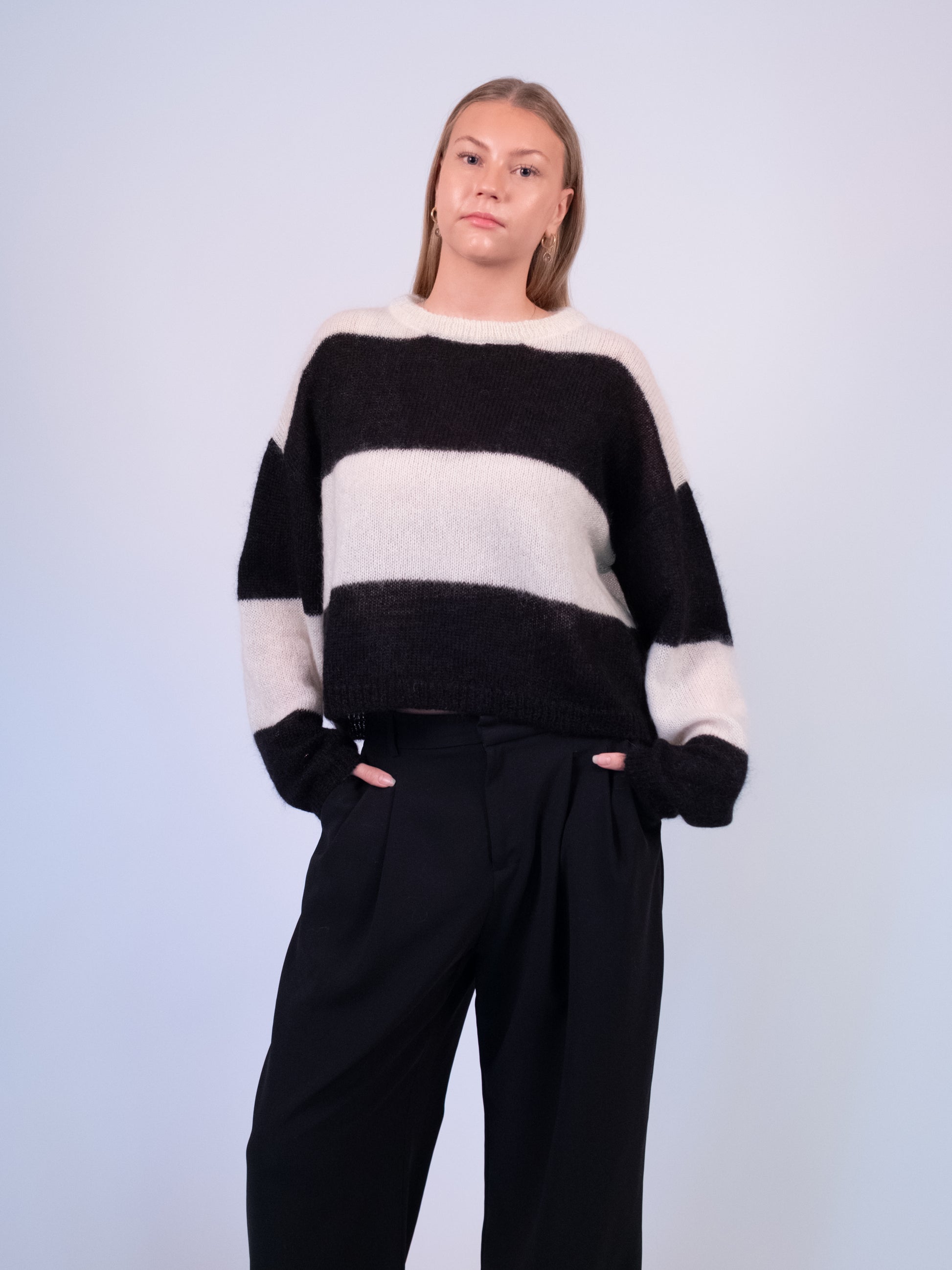 Lightweight oversized sweater made from luxurious Superkid mohair, featuring an elegant slightly larger O-neck, relaxed boxy fit, and extra long sleeves. Works perfectly in layered styles – cozy, versatile, and perfect for year-round wear ♥