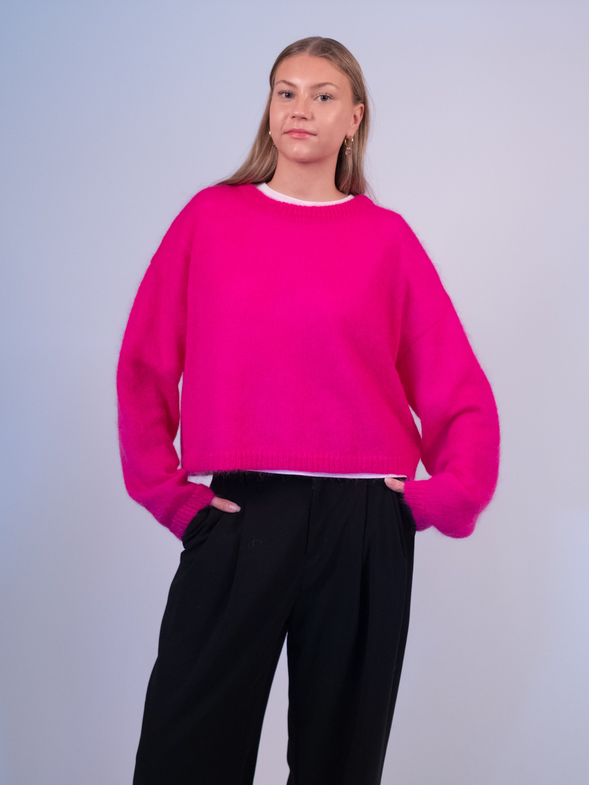 Lightweight oversized sweater made from luxurious Superkid Mohair, featuring an elegant slightly larger O-neck, relaxed boxy fit, and extra long sleeves. Works perfectly in layered styles – cozy, versatile, and perfect for year-round wear ♥